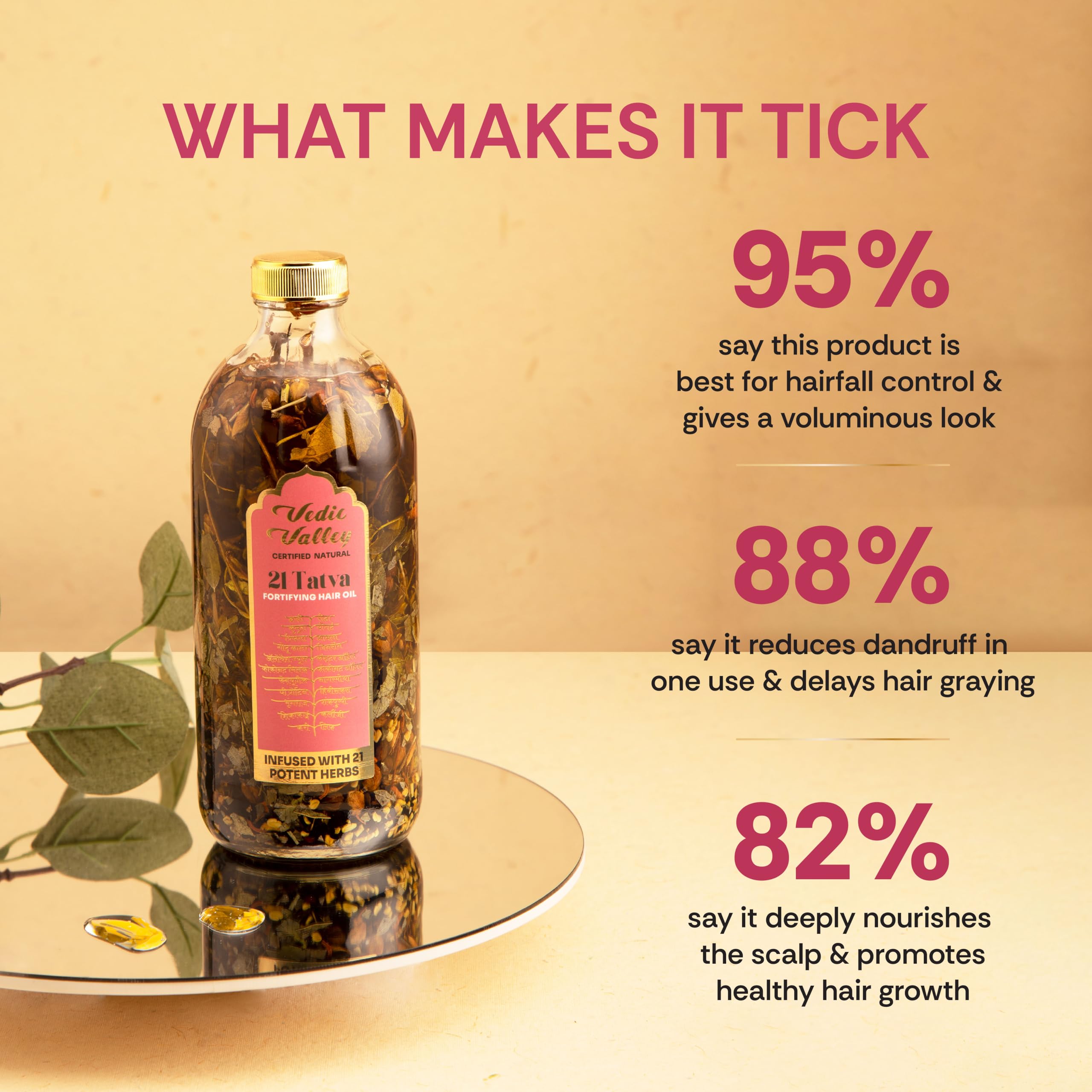 The oil is contains potent herbs like bhringraj, shankhpushpi, triphala etc which help solve all hair problems like hairfall, dandruff, dry and frizzy hair. Its so lightweight that it doesnt stain the pillows or give you forehead acne like some other oils in the market do. This oil is a one-stop solution for all your hair issues.