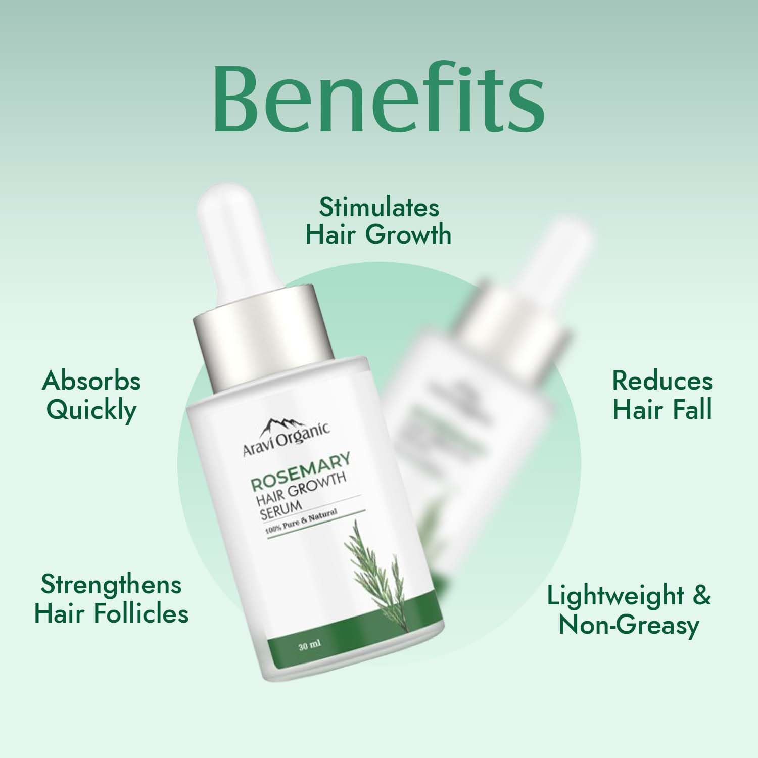 Strengthens Hair & Reduces Hair Loss Aravi Organic Hair Serum with rosemary oil and biotin enhances scalp health improves hair elasticity and strengthens hair from root to tip. This potent blend reduces hair damage minimizes breakage and significantly boo