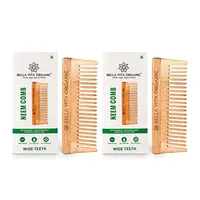 Bella Vita Organic Pure Neem Wooden Comb Wide Teeth Combo (Pack of 2) Dandruff & Hairfall Control Hair Styling Comb Daily Use Natural & Eco Friendly Best for Men & Women