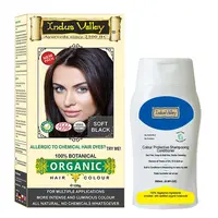 INDUS VALLEY Combo Kit For Styling & Hair Care| 100% Organic & Chemical Free Botanical Hair Color 120 g - Soft Black with 200ml Color Protective Shampoo & Conditioner (120g + 200 ml)