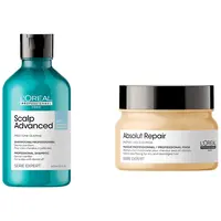 L'Oreal Professionnel Scalp Advanced Anti-Dandruff Dermo-Clarifier Shampoo 300 Ml & Liss Unlimited Hair Mask with Pro-Keratin for Rebellious Frizzy Hair.