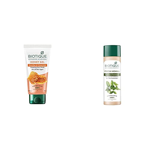 Biotique Bio Honey Gel Refreshing Foaming Face Wash 150mlBiotique Bio Honey Gel Refreshing Foaming Face Wash 150mlBiotique Henna Leaf Fresh Texture Shampoo and Conditioner 190mlColouring Cleanser for Hennaed Hair.Contains Henna which thickens the hair and add a gloss. Can be used on hennaed hair to maintain the henna colour. It retexturises and adds body and fullness to hair. Prevents hairfall. A conditioning and protective cleanser for hair and scalp