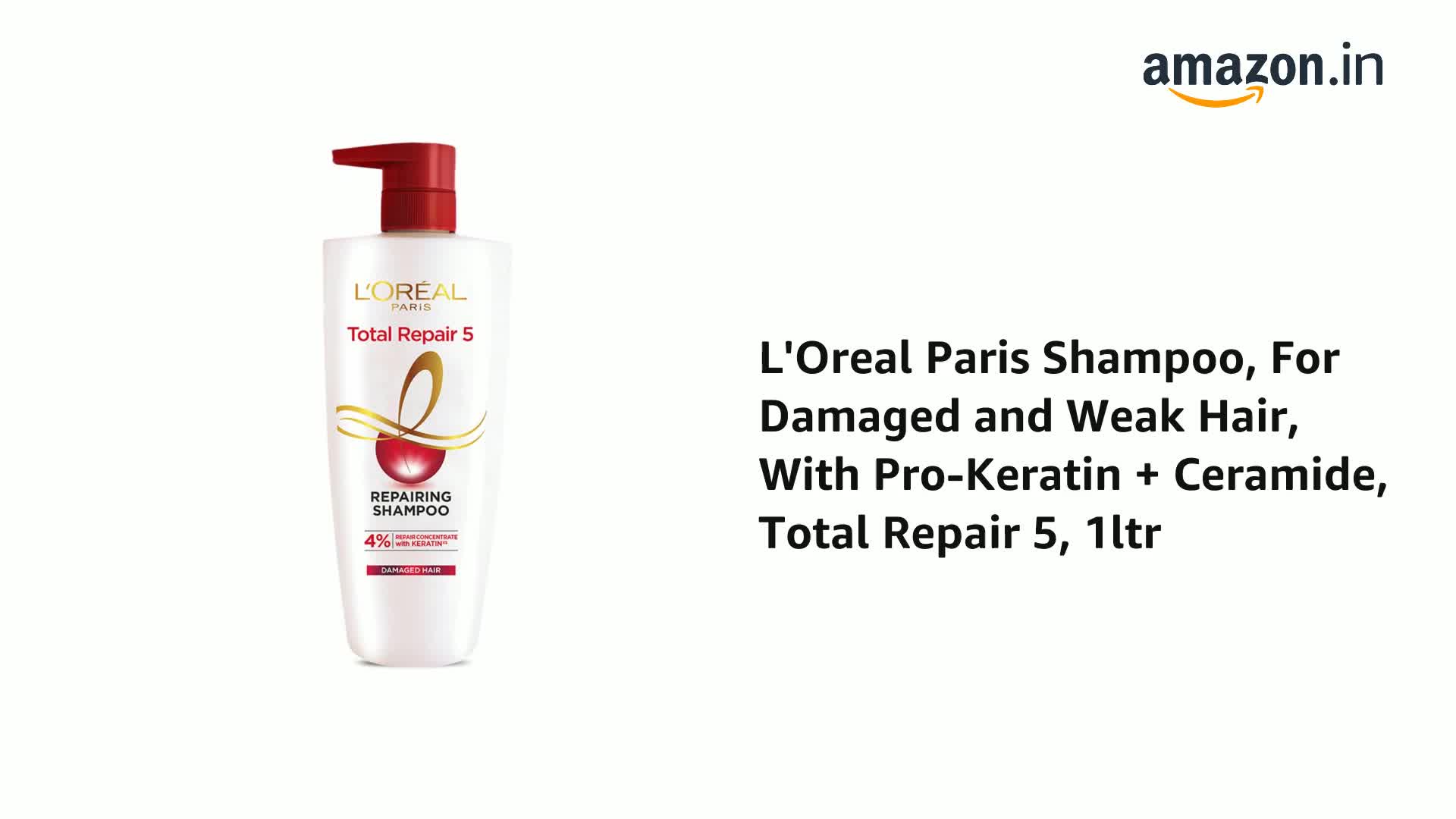 5 Problems.1 Solution. L'Oreal Paris Total Repair 5 Repairing Shampoo helps fight against the five visible signs of damaged hair - Hair fall dryness roughness dullness and split ends without weighing it down. Damaged hair can lack the natural cement which keeps the hair strong and resilient. To ensure cohesion and strength the LOreal Laboratories have created Ceramide-Cement technology to replicate the hairs natural cement targetting the 5 problems. Explore our best hair products to revive and repair damaged hair. Highlights: 1. Helps fight against the five visible signs of damaged hair - hair fall dryness roughness dullness and split ends 2. Shampoo for damaged hair 3. With Protein + Ceramide 4. Fights the 5 signs of damage