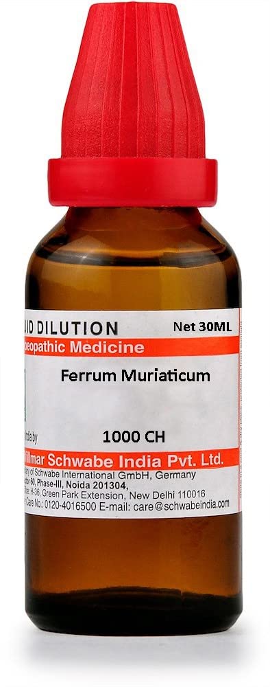 Dr Willmar Schwabe India Ferrum Muriaticum Dilution is a homoeopathic medicine with several uses. It can be used for menstrual troubles indicated in seminal emissions and urinary disorders helps manage digestive ailments including diarrhoea and is useful in respiratory conditions. It can also be used to relieve joint pains cramps and ailments associated with anaemia.