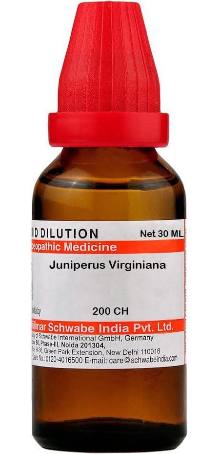 Dr. Willmar Schwabe India Juniperus Virginiana Dilution is a homoeopathy-based medicine effective in the treatment of warts allergies and intestinal worms. It is also helpful for women trying for abortion or taking medicines for early menses. Some of the common indications for this dilution include repeated and periodic paroxysm convulsions painful urethra with a constant urge for urination and painful eyes.