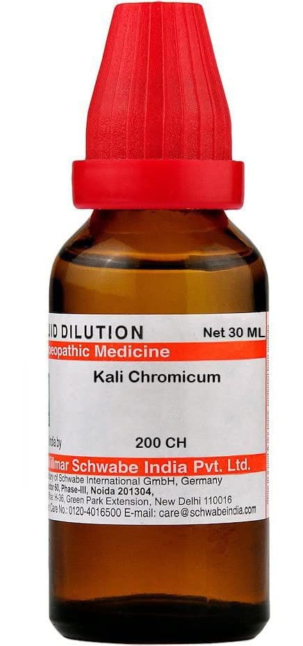 Dr. Willmar Schwabe India Kali Chromicum Dilutionis a homoeopathic medicine helpful in many ailments like stomach disorders respiratory tract problems allergies and hay fever. The medicine is useful in treating severe stomach pain accompanied by vomiting loose bloody stool and weakness. It is useful for nasal congestion sneezing and seasonal allergies.