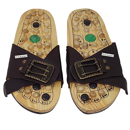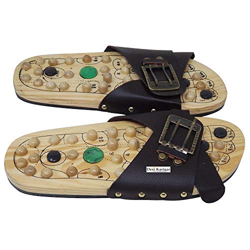 Wooden handmade Acupressure slippers in very fine quality wood from the House of Desi Karigar. These slippers are very useful as it will increase your blood circulation and one of the best gift for your near ones. There are field effect that stimulates all acupressure points on your feet. By using these slippers you can get dual benefit as Acupressure & Therapy reduces pain in lower and upper back neck and several other areas.