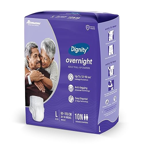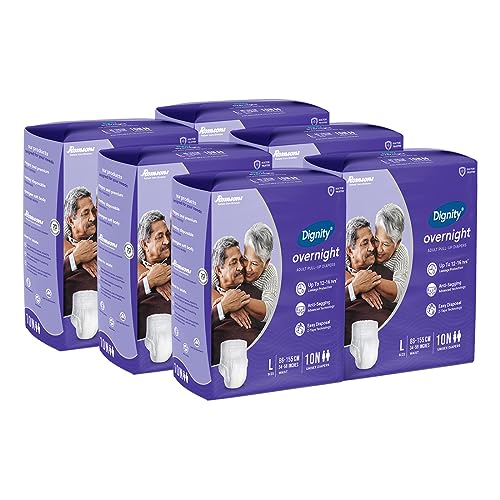 Dignity Overnight Pull Up Adult Diapers Pant Style - 60 Count (Large) with Soft Elastic and Extra Absorbent Core, Waist Size 34" - 59", 10 Pcs/Pack (Pack of 6)