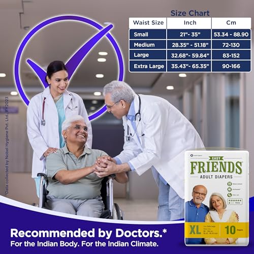 Friends Easy Adult Diapers Tape Style - 40 Count (Extra Large) with odour lock, Unisex, Leakproof, Wetness Indicator and Anti-Bacterial Absorbent Core- Waist Size 35.43-65.35 inch; 90-166 cm