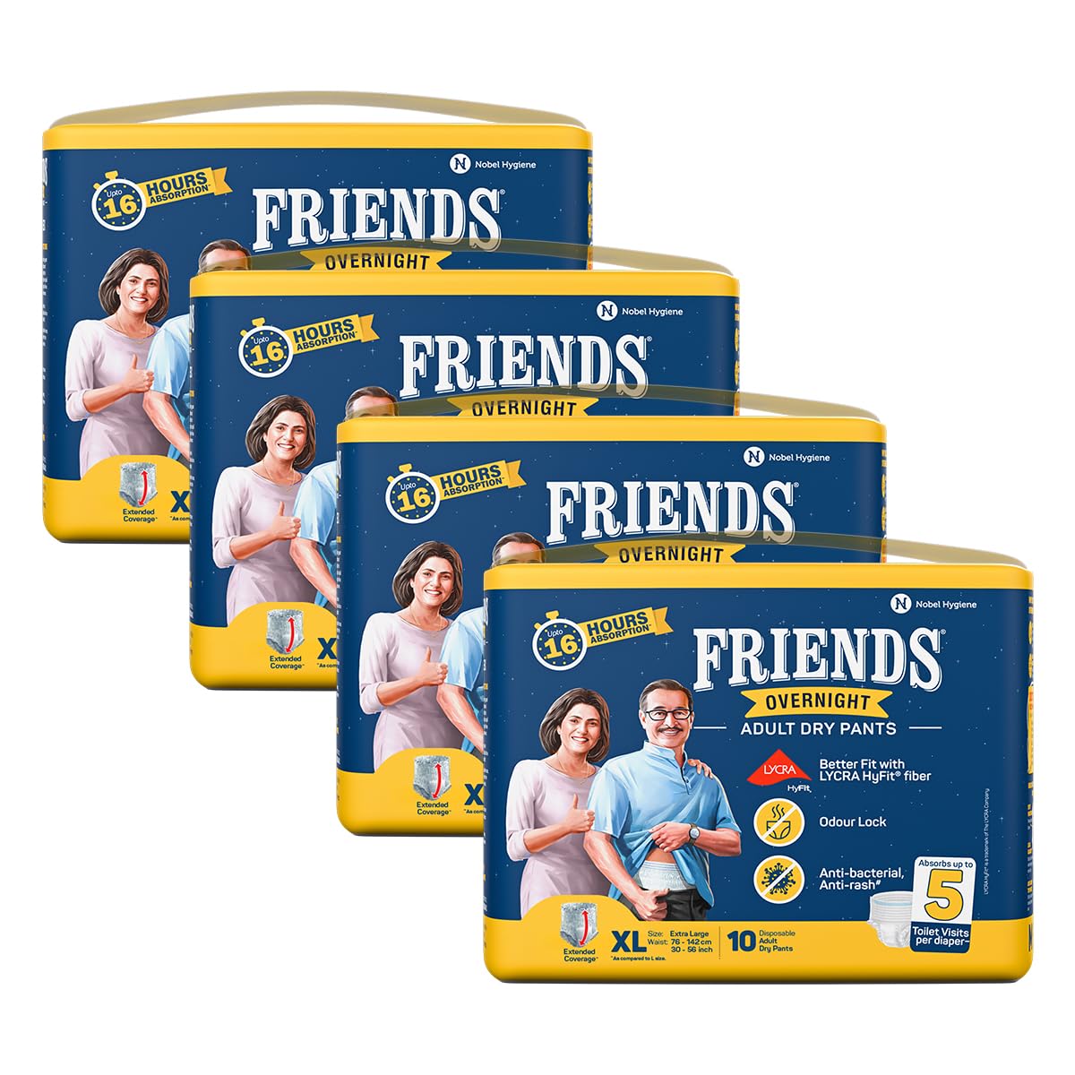 • Friends Adult Diapers XL size to XXL size with up to 16 hours of protection are also available in sizes M-L and L-XL.
