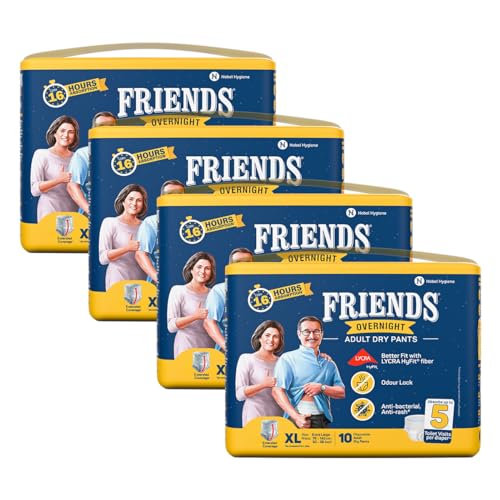 Friends Overnight Adult Diapers Pants Style - 40 Count (Extra Large) with odour lock, Unisex, Leakproof, Elastic Waist and Anti-Bacterial Absorbent Core - Waist Size 30-56 Inch; 76-142 cm