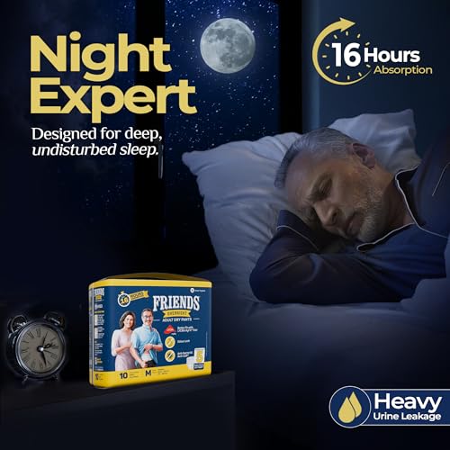 Friends Overnight Adult Diapers Pants Style - 60 Count (Medium) with odour lock, Unisex, Leakproof, Elastic Waist and Anti-Bacterial Absorbent Core - Waist Size 25-48 inch; 63.5-122 cm