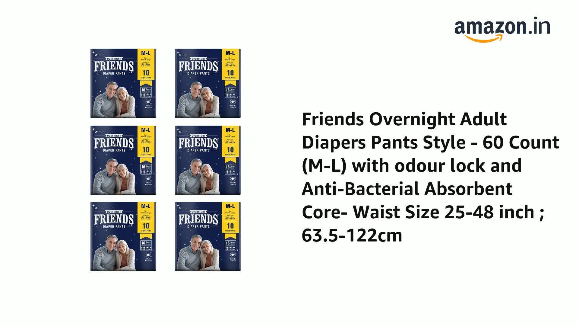 • Friends Adult Diapers medium size to large size with up to 16 hours of protection are also available in sizes L-XL and XL-XXL.
