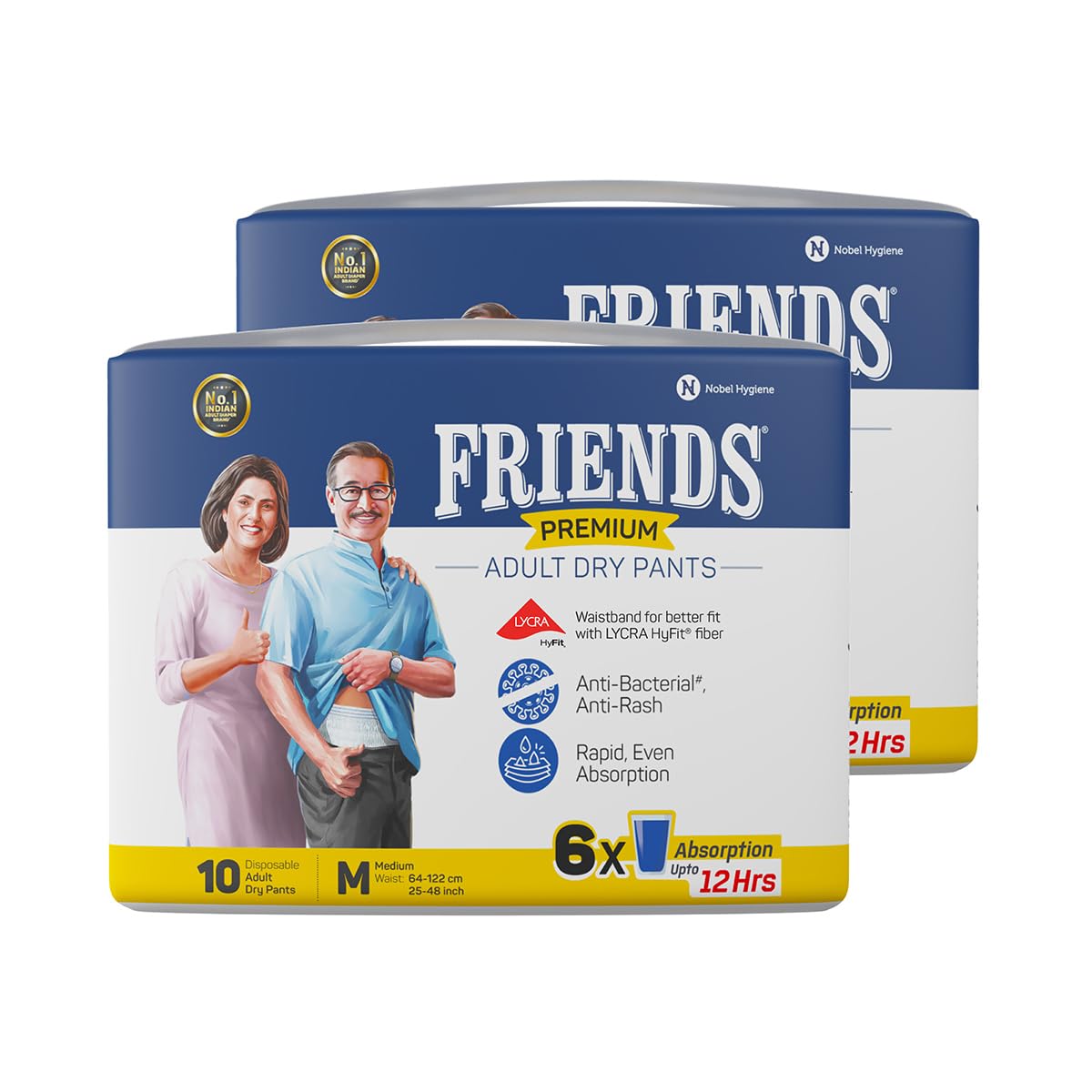 • Friends Adult Diapers medium size pants with 12 hours of protection are also available in sizes L and XL.