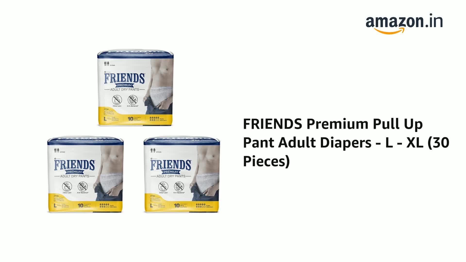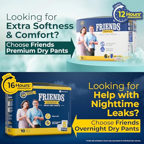 • Friends Adult Diapers medium size pants with 12 hours of protection are also available in sizes L and XL.