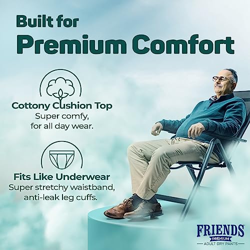 Friends Premium Adult Diapers Pants Style - 30 Count (Large) with odour lock, Unisex, Leakproof, Elastic Waist and Anti-Bacterial Absorbent Core - Waist Size 30-56 inch; 76-142 cm