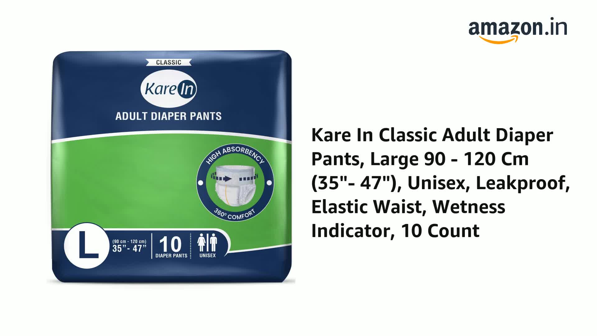 KareIn Classic Adult Diaper Pants Large 90-120 Cm (35"- 47") Unisex Leakproof Elastic Waist Wetness Indicator 10 Count