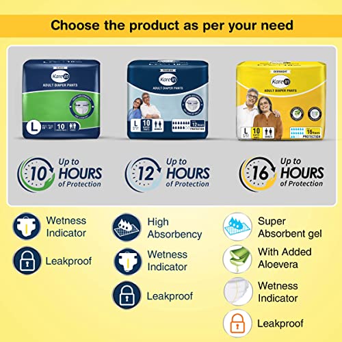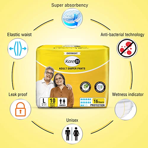 KareIn Overnight Adult Diaper Pants Large 90 - 120 Cm (35"- 47") Unisex Leakproof Elastic Waist With Aloe Vera Lotion Anti-Bacterial ADL Wetness Indicator Pack of 3 30 Count