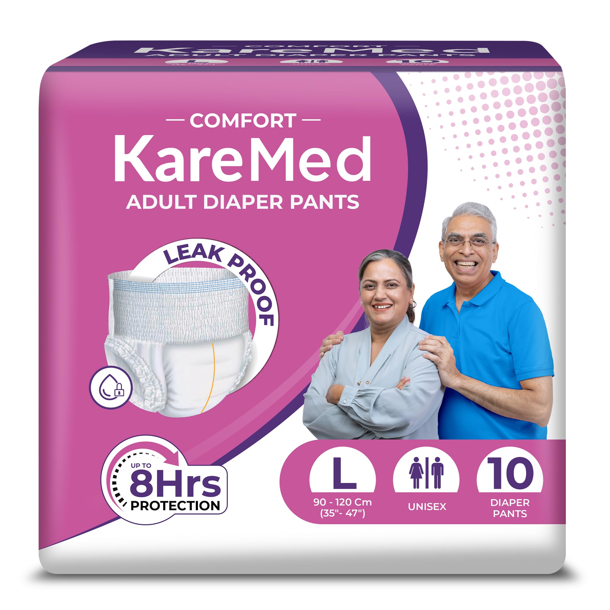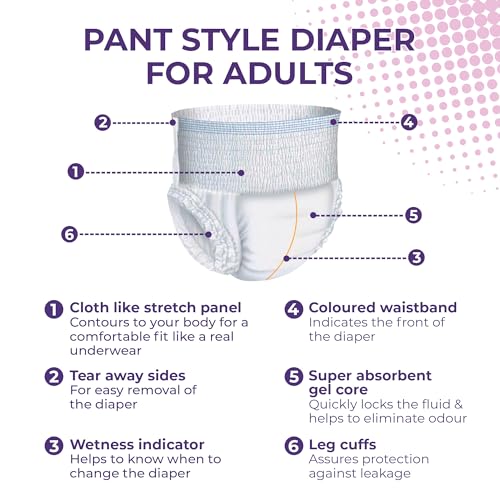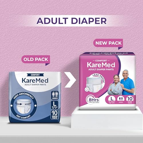 KareMed Comfort Adult Diaper Pants with Large 90 - 120 Cm (35"- 47") is a pant style diaper. It is Unisex and comes with Leakproof Elastic Waist and Wetness Indicator