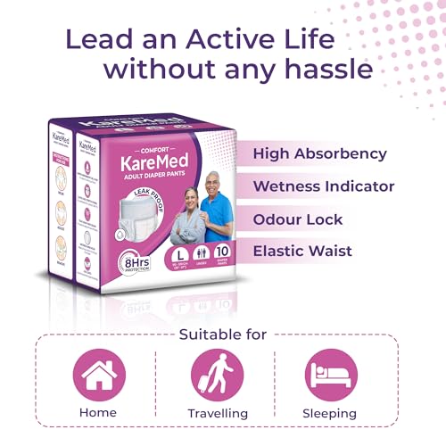 KareMed Comfort Adult Diaper Pants, Large 90-120 Cm (35"- 47"), 10 Count, Unisex, Leakproof, Elastic Waist, Wetness Indicator