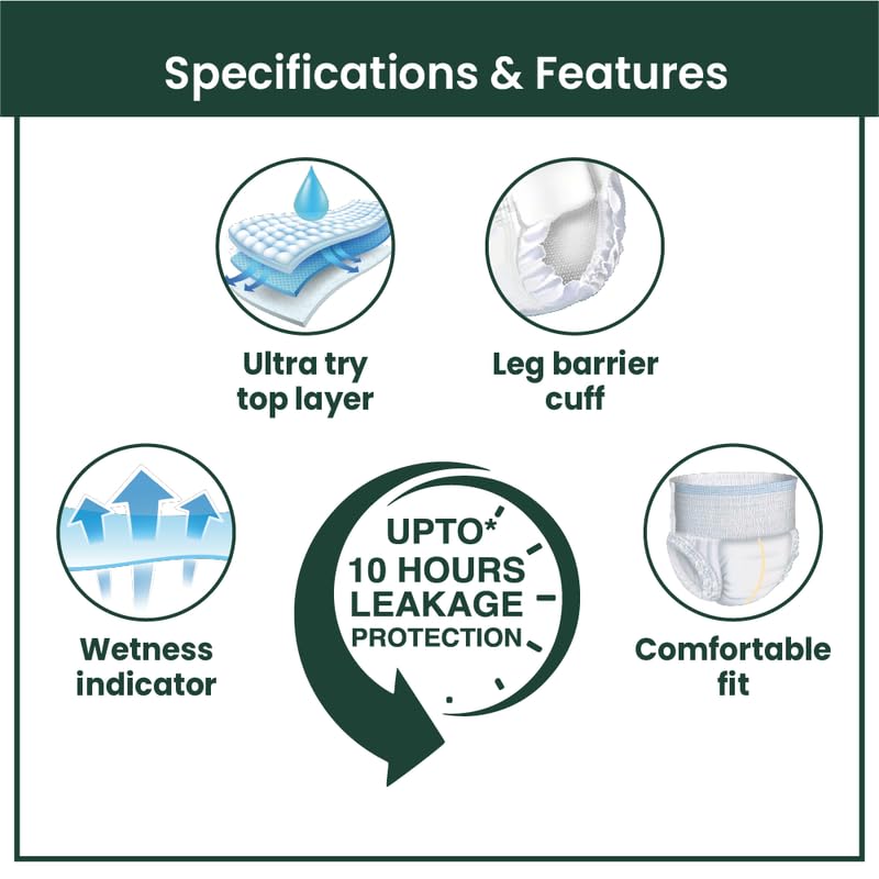 TATA 1mg Unisex Adult Diaper Pant Style 360-Degree Comfort Fit, Cottony Soft Fabric & Anti-Rash Properties (Pack Of 10, Large)