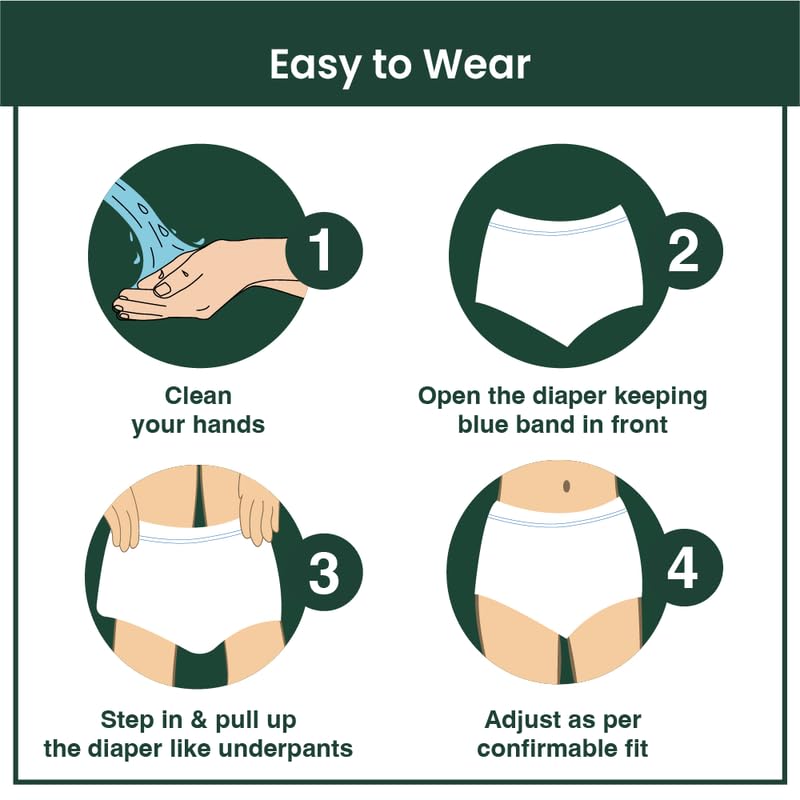 TATA 1mg Unisex Adult Diaper Pant Style 360-Degree Comfort Fit, Cottony Soft Fabric & Anti-Rash Properties (Pack Of 10, Large)