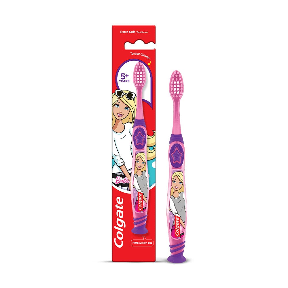 Colgate Kids Strawberry 40g Toothpaste Cavity ProtectionKids must brush their teeth at least 2 times a day and Colgate Kids Toothpaste is a fun way to ensure they enjoy good oral care habits early on! This delicious fruit flavoured toothpaste is especially designed for children of age 6 years and above who have newly erupted or developing permanent teeth. The toothpaste effectively cleanses their mouth leaving it fresh. The kid's toothpaste also provides clinically proven cavity and enamel protection. Sparking colourful gel of Colgate bubble fruit toothpaste makes brushing fun for kids. Developed with the help and expertise of Pediatric dentists Colgate offers a healthy and thorough clean. It ensures your kid's smile gets brighter and cleaner with every use.Colgate Kids Barbie Manual ToothbrushMulticolor1 PieceKids must brush their teeth at least 2 times a day and Colgate Kids Barbie Toothbrush is a fun way to encourage good oral care habits early on! This attractive extra-soft bristle toothbrush has extra soft bristles especially designed for children. It is ideal for kids of age 5 years and above who have baby teeth or developing permanent teeth. Extra soft multi-height bristles on the toothbrush effectively clean big and small teeth while the raised tip helps clean hard to reach back teeth. The kid's toothbrush features a well-rounded handle; a thumb grip offering comfortable hold; a suction cup at the base for easy and fun upright storage and a soft plus safe tongue cleaner on the back of the toothbrush head.