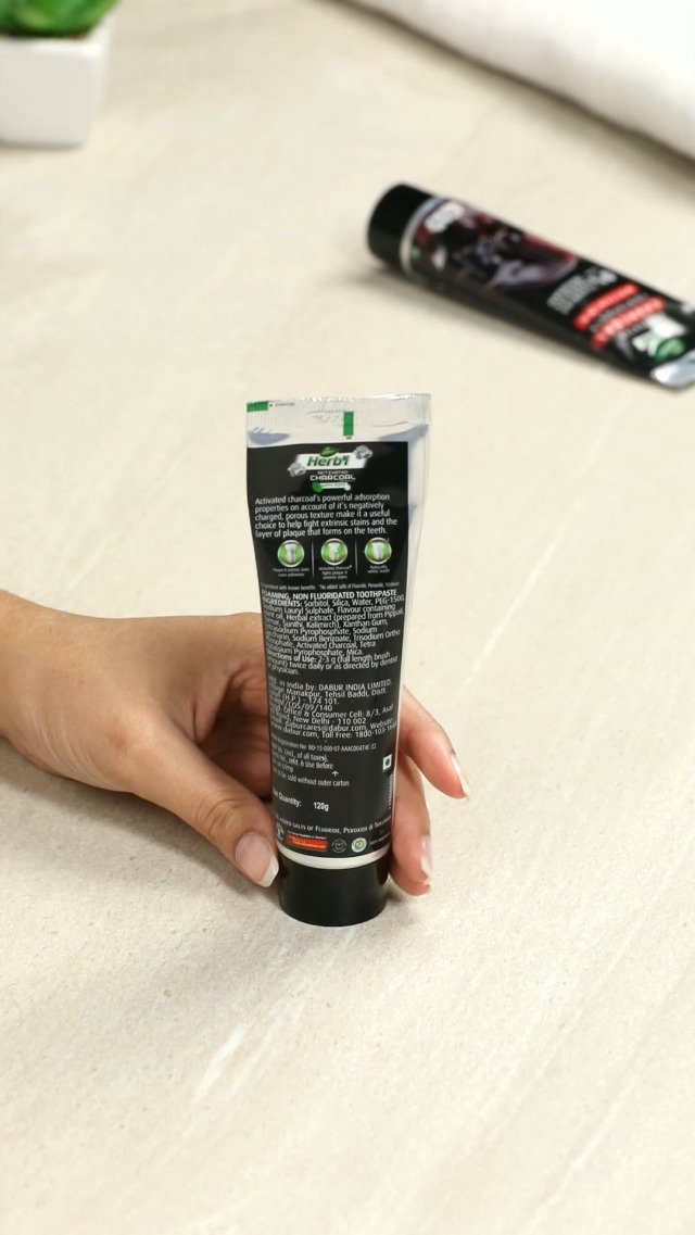 Dabur brings you a unique formulation of charcoal & mint that will help ensure your teeth remain naturally white with a pleasant mouth feel. Activated Charcoal's powerful adsorption properties on account of its negatively charged porous texture make it a useful choice to help fight extrinsic stains and the layer of plaque that forms on the teeth.