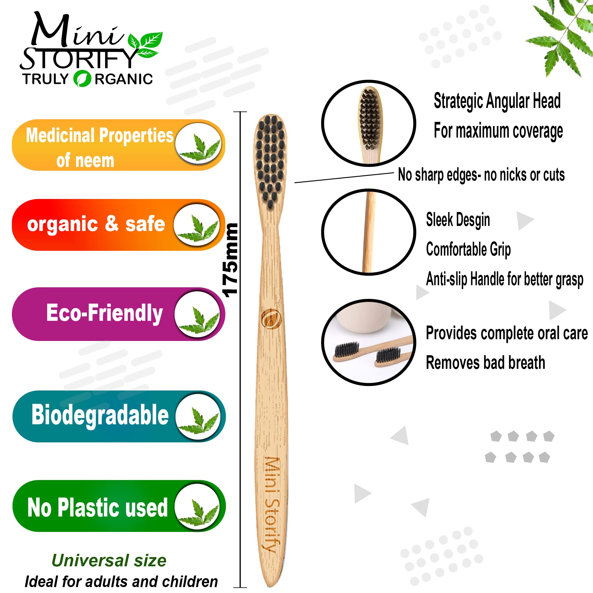 • Mini Storify wooden bamboo toothbrush is made of natural sustainable Bamboo farms. Our product is pure natural. Perfect on to your kit. Allowing you to clean your teeth with a clear conscience every day it gives you a blissful experience whenever you hold