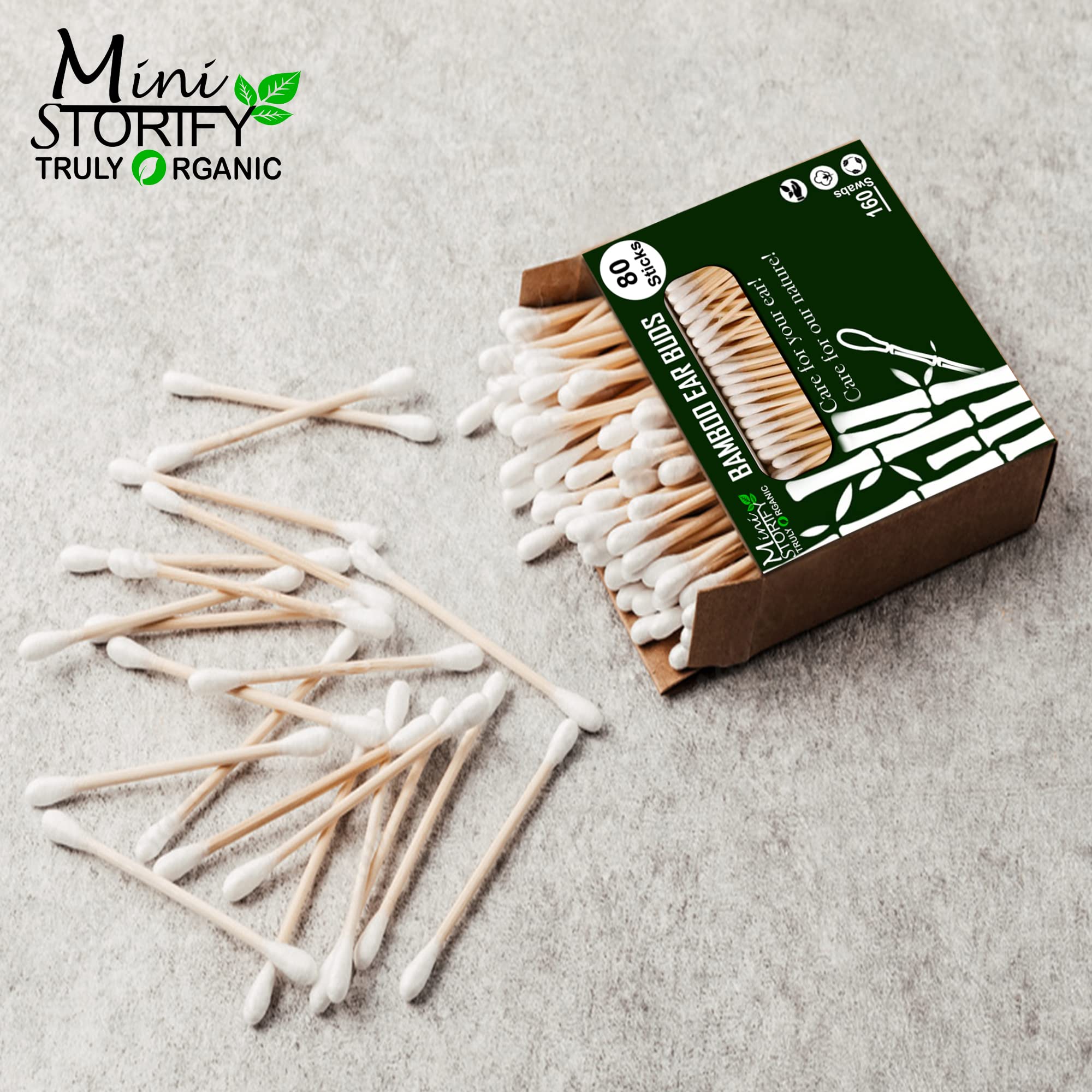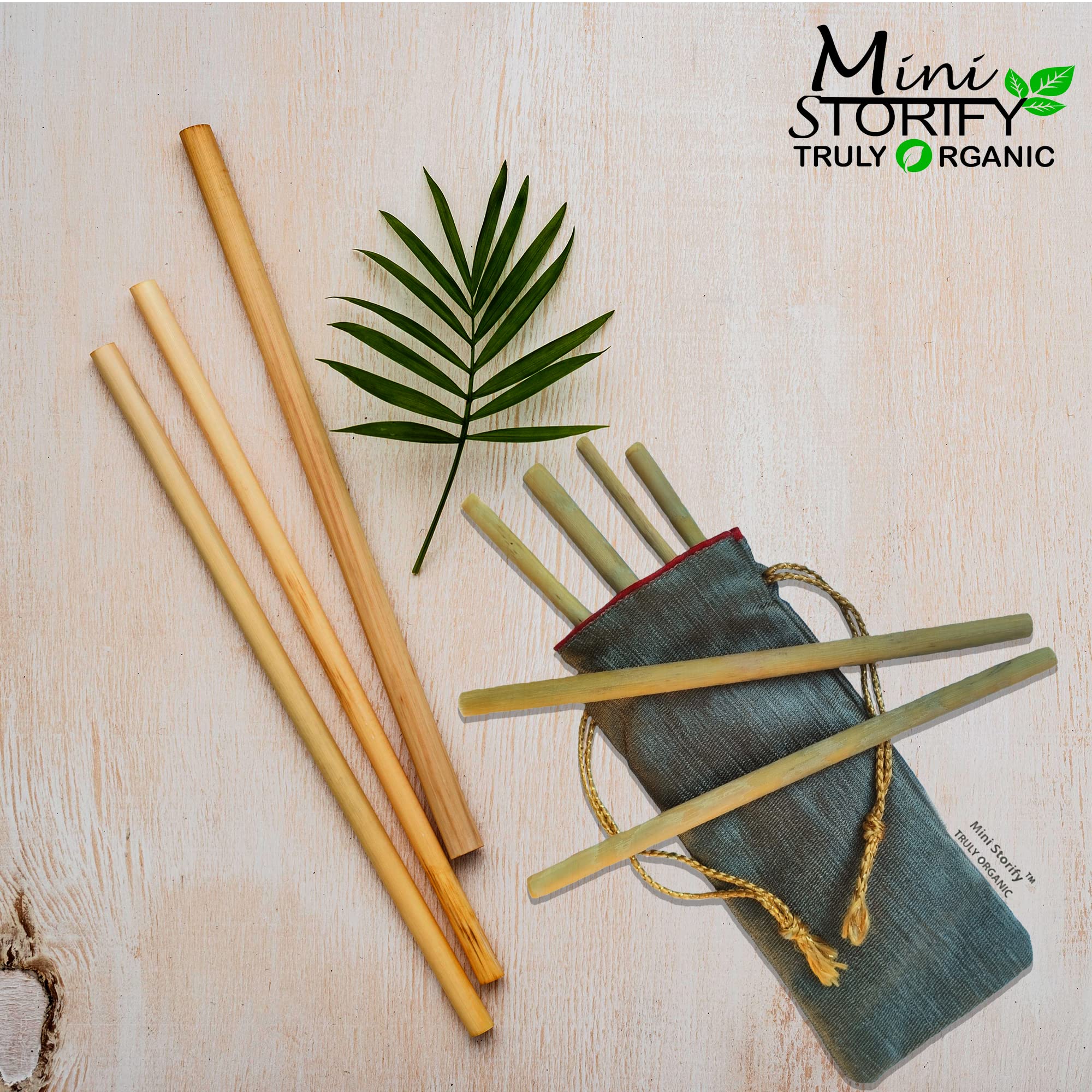 Mini Storify Truly Organic 2.Bamboo Cotton Ear buds 2.Bamboo Tooth Brush ,Natural 4.Bamboo Straw (8")Pack-8)