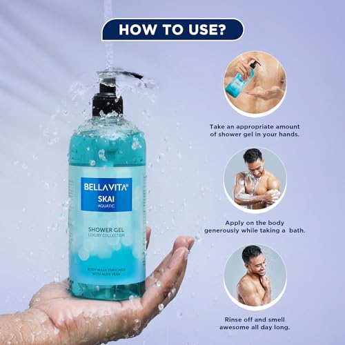 Bella Vita Luxury Skai Aquatic Body Wash Refreshing Shower Gel for Deep Cleansing Hydrating & Moisturising Skin with Aloe Vera 500 Ml