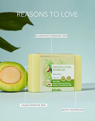 fabessentials Cocoa Butter Glycerin Bathing Bar is enriched with Cocoa Butter and Glycerin. Free from toxins this gently cleanses away dirt and grime from your body while retaining skin's natural moisture balance. Avocado helps soothe skin protect from breakouts and improve skin's elasticity while Glycerin hydrates and moisturises skin and banishes dryness and roughness.