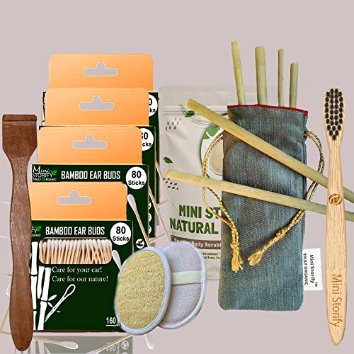 Mini Storify Truly Organic 4.Bamboo Cotton ear buds 1.bamboo tooth brush 1.Pure Neem Wood Tongue Cleaner ,2.Oval Loofah Pad,6.Bamboo StrawPACK-14)
