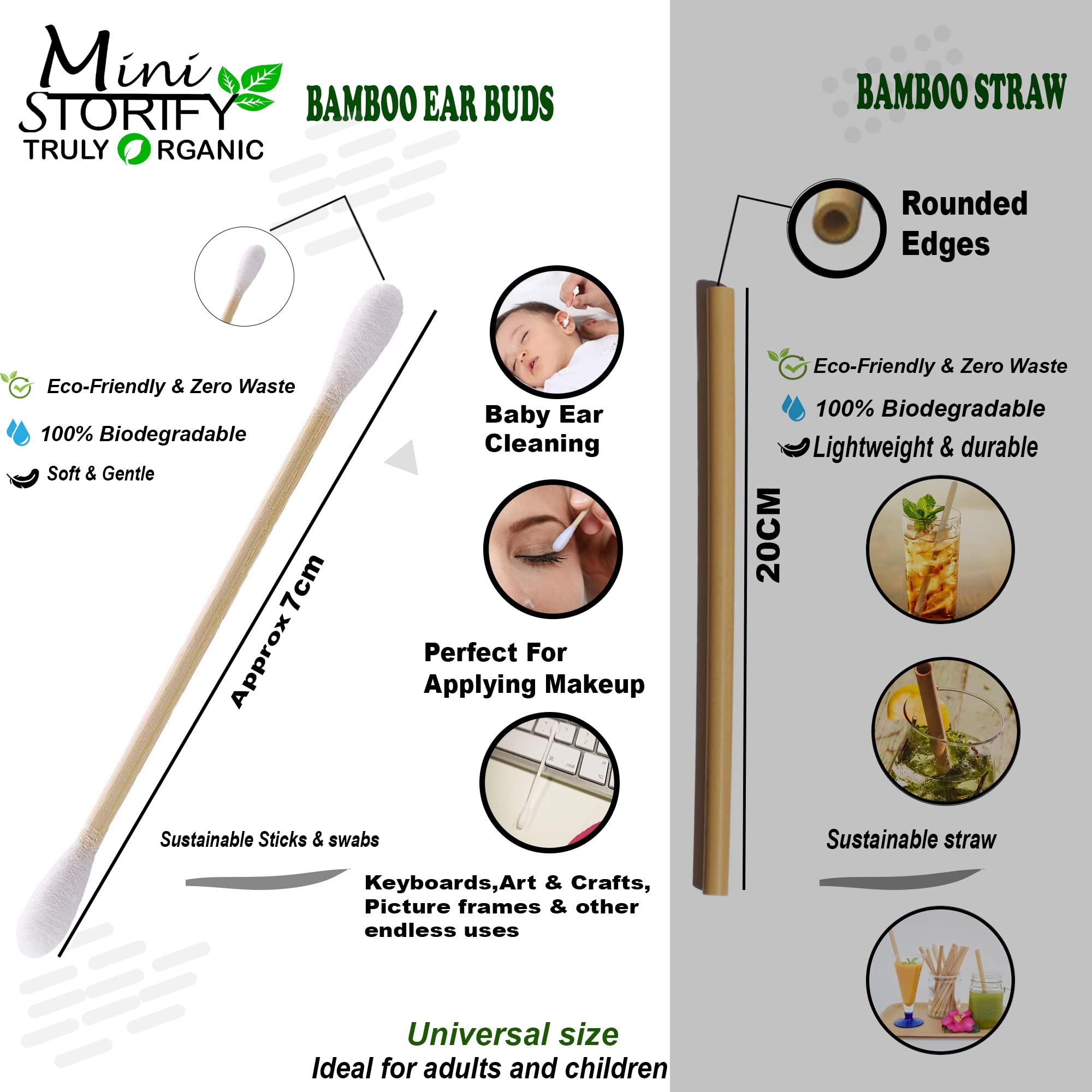 Mini Storify Truly Organic2.Bamboo Cotton ear buds 2. bamboo ToothBrush2.bamboo Tongue cleaner,2.Loufahs 4. Bamboo Straw (PACK OF 12)