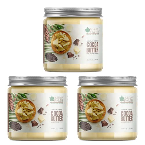 Bliss of Earth 100% Pure Organic Cocoa Butter | Raw | Unrefined | African | 3x100GM | Great For Face Skin Body Lips DIY products|