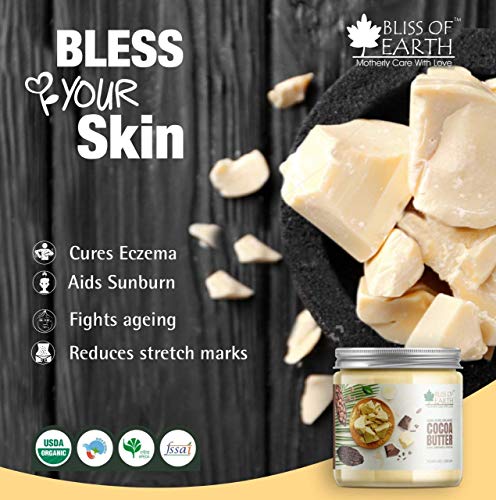 • HIGHEST PREMIUM GRADE: Bliss of earth 100% organic Cocoa Butter is therapeutic grade and is best with unrivaled quality. Unlike other Cocoa Butters bliss of earth 100% pure Cocoa Butter is unrefined no added fragrance hexane free preservative free chemica