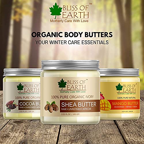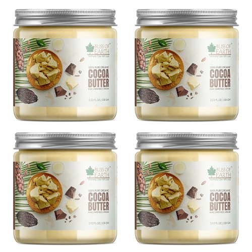 DISCOVER THE BEAUTY OF YOUTHFUL GLOWING SKIN AND SOFT LUSCIOUS HAIR WITH THIS ONE NATURAL AND PURE BUTTER. Do you need the remedy for one of these common skin and hair issues? Stretch marks Scars Blemishes Eczema?- Dry cracked skin heels lips? - Wrinkles Fine lines? - Dry cracked nails cuticles? - Dry Dehydrated Frizzy Unruly or Brittle hair? - Minor cuts Burns Sunburn Diaper rash? And the list goes on... FINALLY GET THE BEAUTIFUL SKIN AND HAIR OF YOUR DREAMS WITH BLISS OF EARTH 100% PURE ORGANIC RAW COCOA BUTTER Bliss of earth cocoa butter is unrefined meaning it has not gone through a chemical extraction process that overheats and bleaches the butter leaving it with less of its healing properties. Because our butter is so pure it has an amazing lip smacking chocolaty aroma. Our Cocoa butter is ultra healing because it has high contents of antioxidants essential fatty acids vitamins E and K the beauty vitamins. Our butter is sealed in our controlled environment and will come to you just as you see it. This butter is perfect for fighting ageing and stretch marks conditioning your hair or beard and moisturizing your skin. You will be hooked on how this butter makes you look and feel. IT'S TIME FOR YOU TO EXPERIENCE TRULY PURE COCOCA BUTTER AND REVEAL HOW GORGEOUS YOUR SKIN AND HAIR CAN BE. We you will be 100% satisfied and in love with your new skin and hair or your money back. SO EMPTY OUT YOUR BEAUTY CABINET AND ADD BLISS OF EARTH 100% ORGANIC COCOA BUTTER TO YOUR CART NOW AND ENJOY BEING IN YOUR OWN SKIN.
