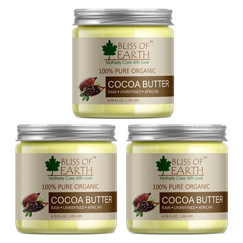Bliss of Earth 100% Pure Organic Raw Cocoa Butter | 3x200GM | Raw | Unrefined | African | Great For Face Skin Body Lips DIY products|