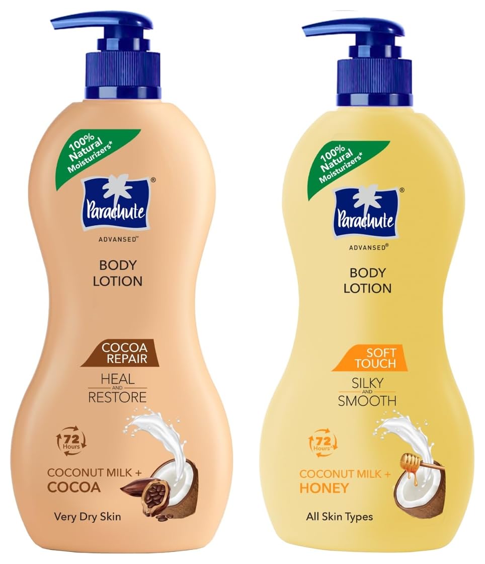 Parachute Advansed Soft Touch Body Lotion for Women & Men, All Skin types, 400ml |72h Moisturisation & Parachute Advansed Cocoa Repair Body Lotion, Intense Moisture, 400ml