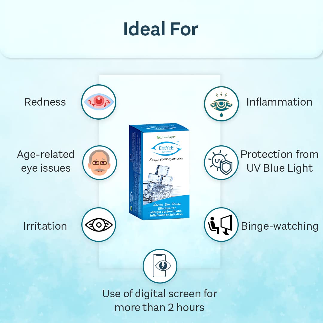 Unique and perfect blend of nature's most efficacious ingredients contaning an extraordinary combination of Triphala Nimb bark Tulsi Punarnava etc. Peppermint and Kapoor provide cooling effect to eyes