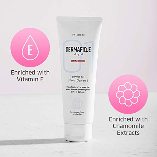 The skin's pH plays a crucial role in strengthening its defence system. The topmost layer of the skin is called the acid mantle. This acid mantle acts as a barrier and protects the skin from external aggressors inhibits the growth of bacteria and maintains the optimal acid level for the skin to thrive. This implies that the skin is naturally equipped to fight infection and environmental on its own. However its ability to do so is inenced by its pH level. The acid mantle is made up of sebum (oil) that mixes with sweat amino acids etc to create the skin’s pH which should ideally range between 4.5 to 5.5 on a scale from 1 (most acidic) to 14 (most alkaline). When skin is too acidic it results in breakouts whereas when it is too alkaline it results in dryness. In both these conditions the skin’s defence system (barrier function) gets compromised ing to cell damage. Most cleansers tend to disrupt this balance which is why it becomes imperative to find a cleanser that can not only cleanse the skin but o maintain its pH level. The Dermafique Perfect pH [Facial Cleanser] is enriched with nourishing Vitamin E and soothing Chamomile extracts to deeply cleanse skin without altering its pH balance. By protecting pH levels it o s the skin’s defence system against skin cell damage. This -free formula cleanses skin of impurities while retaining its essential nutrients and moisture. Dermafique encourages you to follow the smart new derma-routine: 01 cleanse. 02 tone. 03 hydrate for healthy beautiful zen-like skin. The Perfect pH [Facial Cleanser] is a vital part of the tone portfolio—step 01 of a highly effective system that des cleansed balanced and hydrated skin.