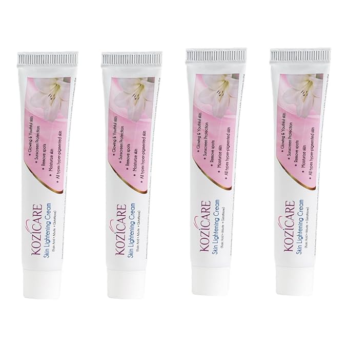 Kozicare Skin Lightening Non-Sticky Cream Lotion | Enriched with 3% Kojic Acid, 1% Alpha Arbutin, 1% Glutathione, 2% Niacinamide, 2% Vitamin C | Best for Melasma, Pigmentation, Dark/Age Spots, Uneven Skin Shade - 15gm (Pack of 4) (New Formula)