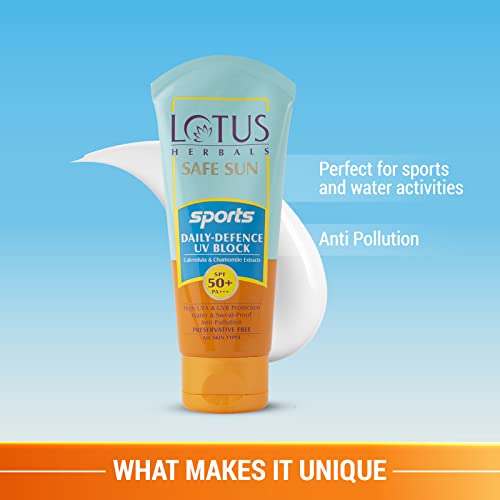 Safe sun sports daily-defence UV block SPF 50+ is a preservative-free non-greasy formulation that gives broad spectrum protection from UVA & UVB rays. This waterproof formulation is great for water and outdoor activities. It prevents the skin from sun tan sun spots freckles and pigmentation. It forms an invisible micro-filter to prevent penetration of fine pollutants in the skin provides protection from free radical damage and atmospheric toxins.