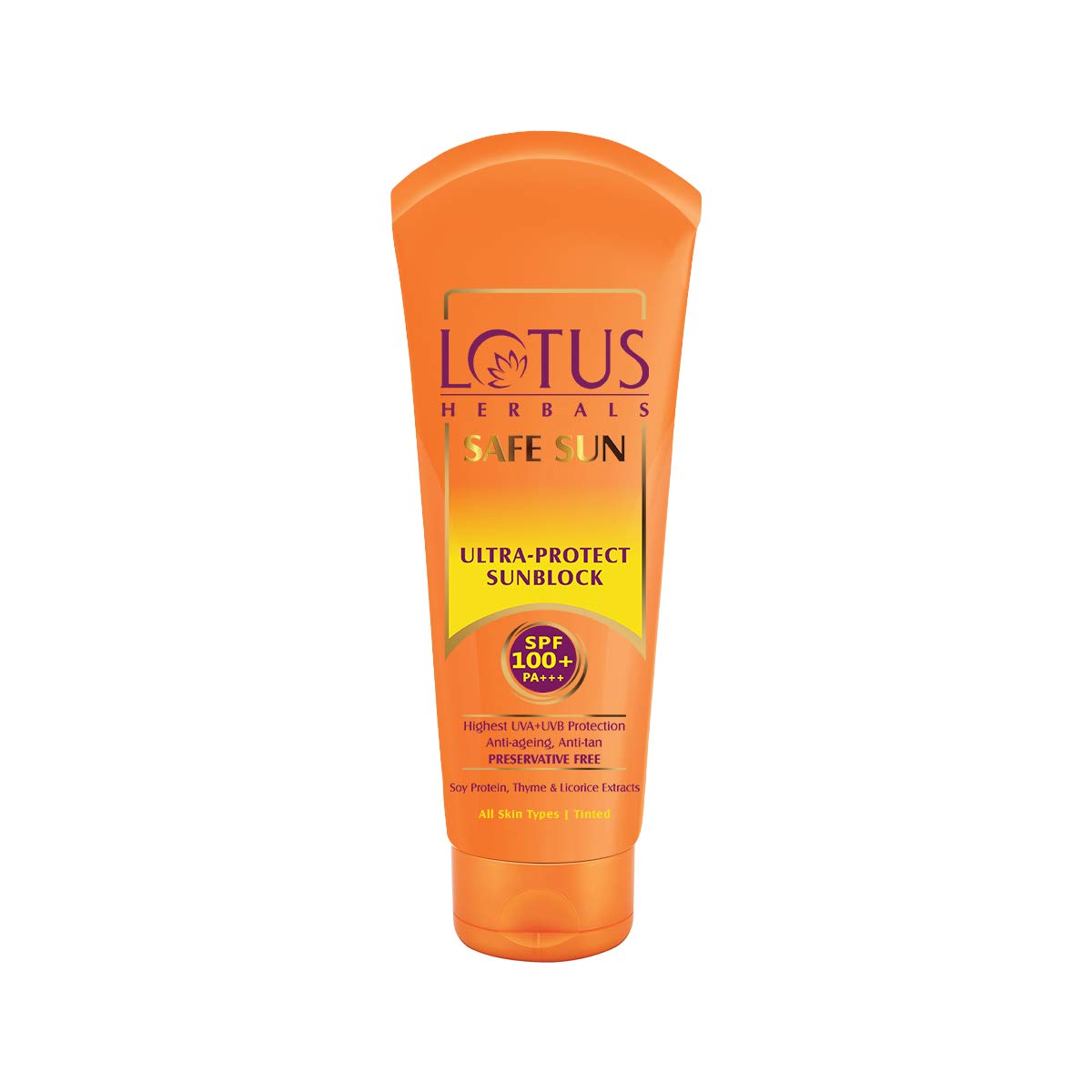 Lotus Herbals Safe Sun Ultra Sunblock Cream For All Skin Types | Spf 100+ Pa+++ | Anti-Ageing | Preservative Free | 50G, Pack Of 1