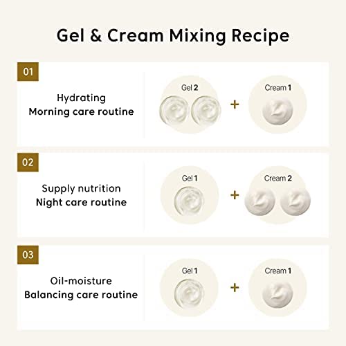 Rice Pure Gel And Cream is 2 in 1: soothing gel and nourishing cream. The gel has a lightformula that instantly calms down the skin irritated by sun exposure while the cream is the best option for those who need extra moisturizing and nutrition care.Ingredients:-Water oryza sativa (rice) extract glycerin caprylic/capric triglyceride hydrogenated polydecene niacinamide phenyl trimethicone betaine 12-hexanediol polyglyceryl-3 methyldistearate laminaria japonica extract eclipta prostrata leaf extract centella asiatica extract ficus carica (fig) fruit extract acmella oleracea extract phellodendron amurense bark extract melia azadirachta flower extract melia azadirachta leaf extract curcuma longa (turmeric) root extract ocimum sanctum leaf extract theobroma cacao (cocoa) seed extract corallina officinalis extract camellia sinensis leaf extract vigna radiata seed extract leucojum aestivum bulb extract diospyros kaki leaf extract macadamia integrifolia seed oil hydrogenated lecithin sodium hyaluronate cyclohexasiloxane cetyl alcohol ammonium acryloyldimethyltaurate/vp copolymer methylpropanediol glyceryl polymethacrylate glyceryl stearate behenyl alcohol trehalose pentaerythrityl distearate polyglyceryl-10 laurate octyldodeceth-16 sodium stearoyl glutamate acrylates/c10-30 alkyl acrylate crosspolymer glyceryl caprylate fructooligosaccharides disodium edta cellulose gum beta-glucan butylene glycol hydrolyzed hyaluronic acid dextrin ceramide np pentylene glycol ethylhexylglycerin hydroxyacetophenone.How To Use:- Scoop a quarter-sized amount from the jar with spatula and gently apply all over your face. For Moisturizing morning skincare routine or to calm down irritated skin apply in ratio Gel : Cream = 2 : 1 For Nourishing night skincare routine or for extra moisturising care apply in ratio Gel : Cream = 1 : 2.
