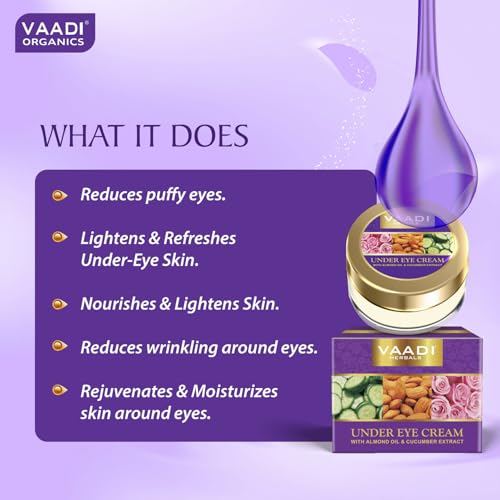 Vaadi Herbals Under Eye Cream, Almond Oil and Cucumber Extract, 30g
