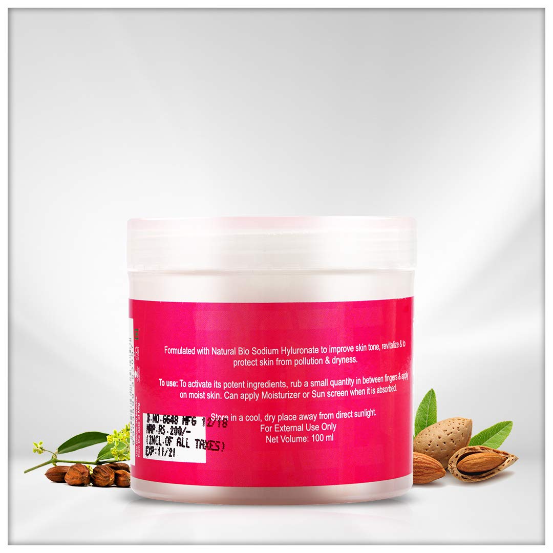 Formulated with natural bio sodium hyluronate to improve skin tone revitalize and to protect skin from pollution and dryness.