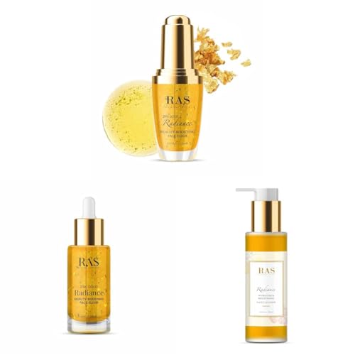 RAS Luxury Oils & RAS Luxury Oils 24K Gold Radiance Beauty Boosting Face Elixir Serum & RAS Luxury Oils Radiance Hydrating & Brightening Face Wash; Enriched With Saffron, Rose & Orange Peel, Makes Skin Radiant & Supple, 3D Hydration Concept Circulates Moi