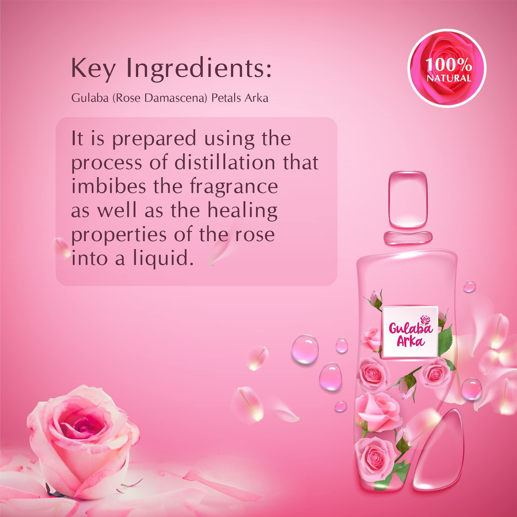 Dwibhashi Gulaba Arka (Rose Water) |Natural Skin Toner Provides Glow & Freshness| 500 ml
