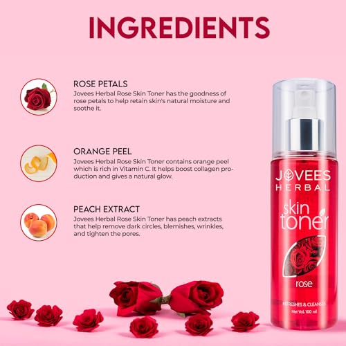 HomeHealth & PersonalSkin CareFace CareTonersJovees Herbal Rose Skin Toner For Refreshing Youthful Skin, Tightens Pores, Healthy Glow | Face Mist & Toner For Normal to Dry Skin | Paraben, Alcohol And Chemical Free 100ml